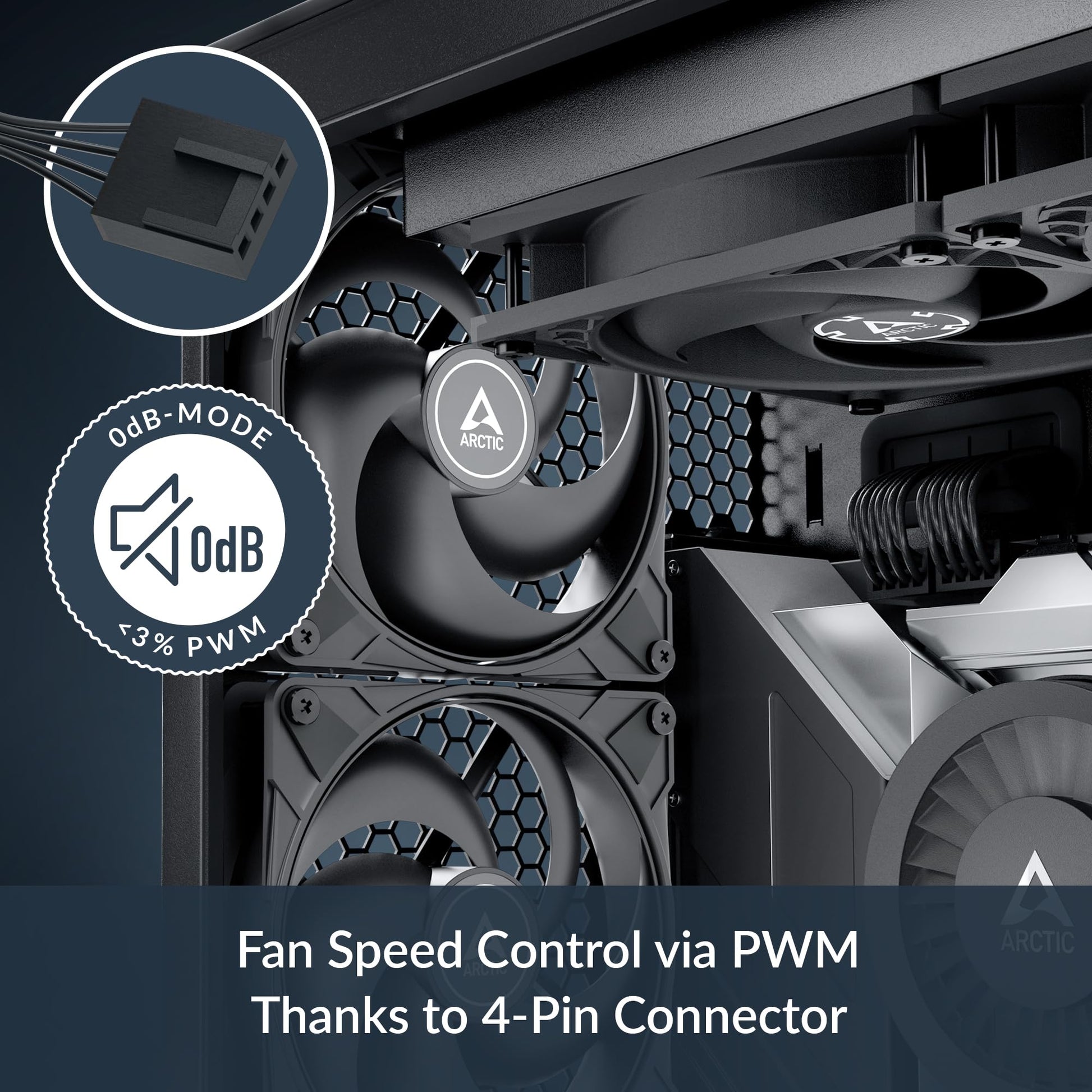- WIDE RPM RANGE: Thanks to the 4-pin connector, the speed can be controlled via PWM. Below 3 % PWM the fan stands still, above 3 % it is infinitely variable between 400-2800 rpm