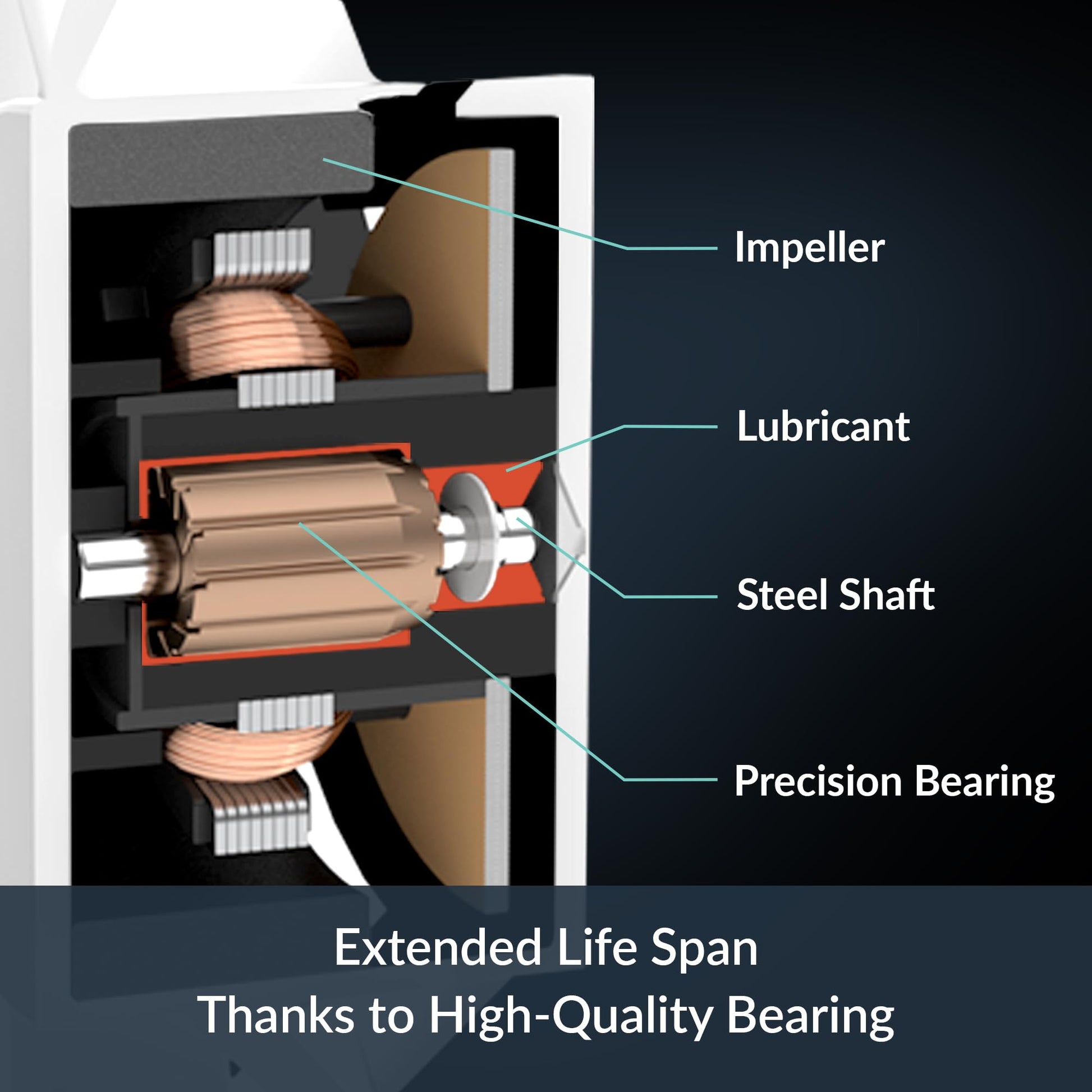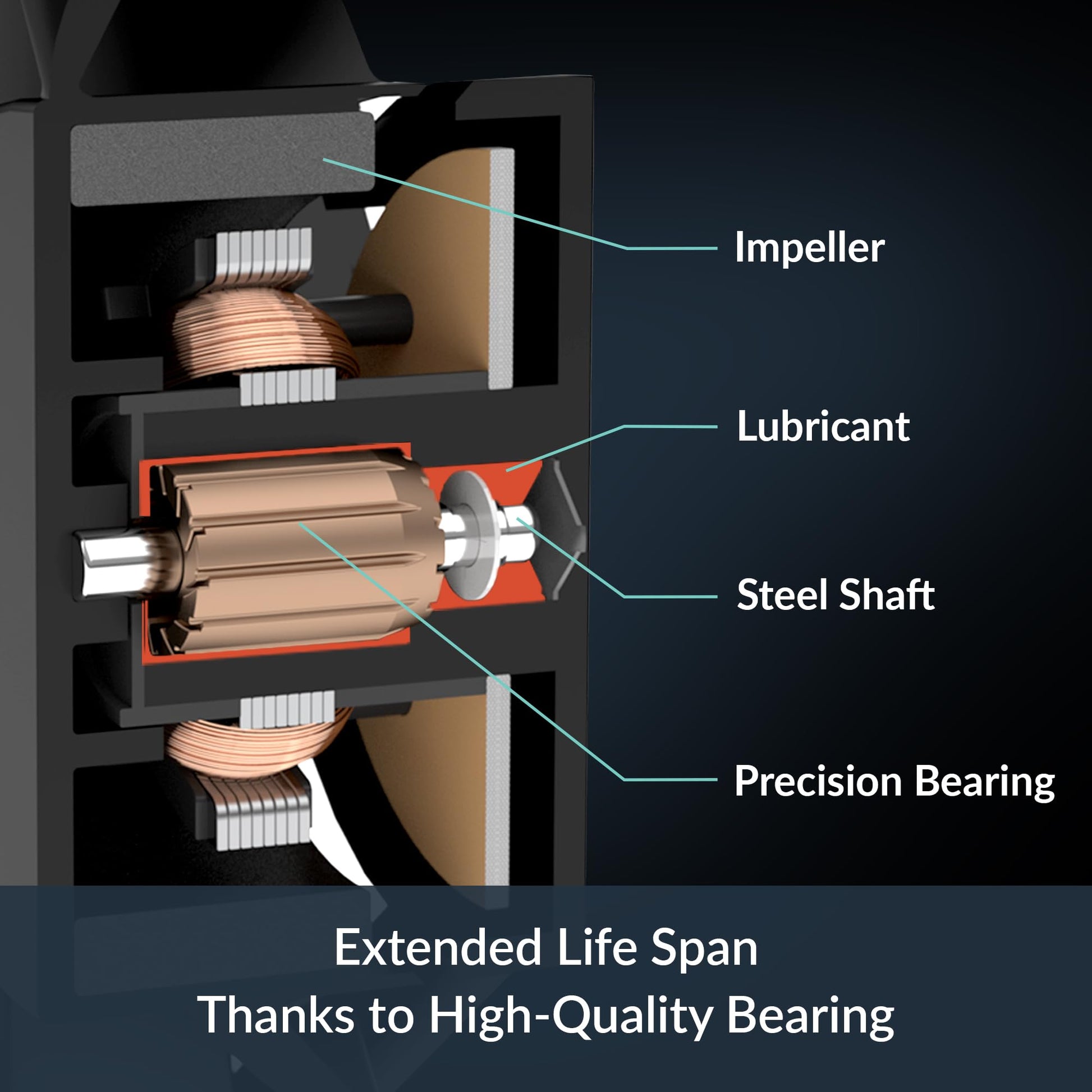 - FLUID DYNAMIC BEARING: Long service life, silent operation at low speeds and powerful performance at maximum speed