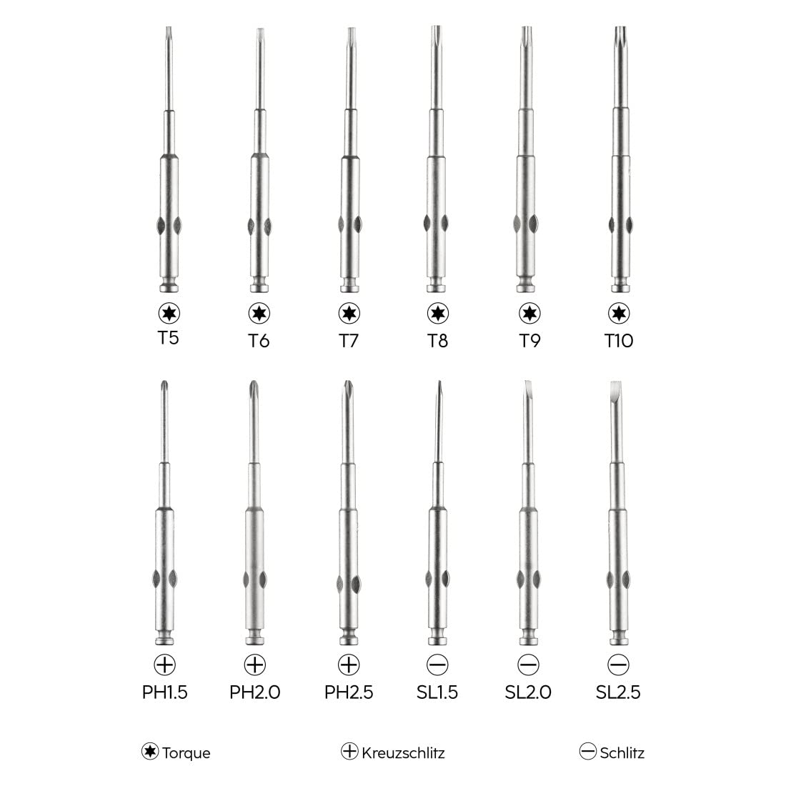 - Incredibly tactile and manufactured with high-grade steel, The screwdriver kit includes 3 "Slotted" Driver bits, 3 "recessed" Driver bits and 6 "torque" Driver bits enabling you to tackle the toughest of tasks